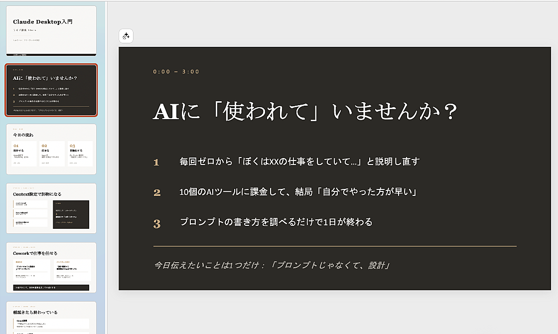 むしろ、専門用語わからなくても、Claudeアプリ1つあればちゃんとAIが仕事してくれる状態を作れます。