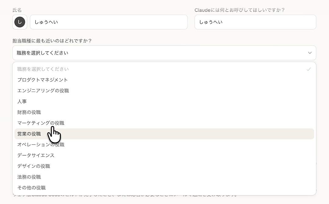 名前と職種を設定できます。職種は選ばなくてもOK。